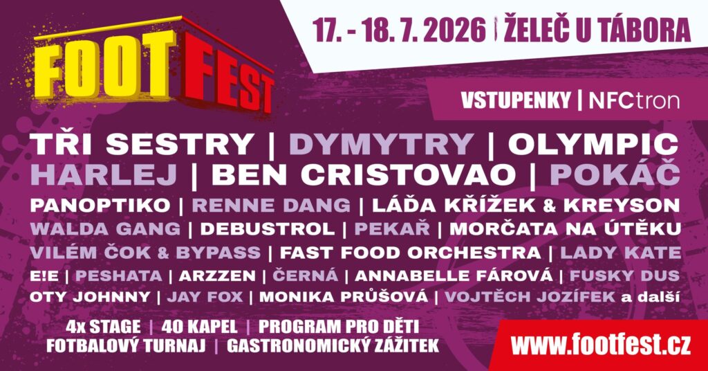 Line up Footfestu 2026 je téměř kompletní a už teď je jasné že návštěvníky čeká největší ročník v historii festivalu Během dvou dnů se v areálu v Želči u Tábora představí celkem